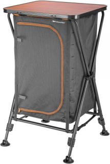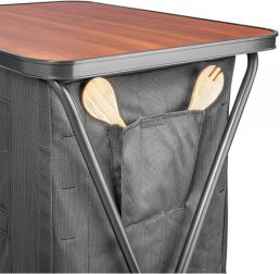 Die Schränke der zweiten Generation zeichnen sich wie ihre Vorgänger durch eine durchdachte Gesamtkonstruktion, ansprechende Optik und einen attraktiven Preis aus. Sie bestehen aus einem stabilen, leichten Aluminium-Gestell und einem robusten Bezug aus 600D-Ripstop-Material. Ganz neu sind die Ablageplatten in edler Holz-Optik. Beide Modelle haben eine integrierte Belüftung an der Rückseite, höhenverstellbare und mit großen Standtellern ausgestattete Standfüße sowie praktische Seitentaschen und sind bis 30 kg belastbar. Sie lassen sich schnell und einfach zusammenklappen und in der mitgelieferten Aufbewahrungs- und Transporttasche leicht und sicher verstauen. Mit stabiler Platte und 3 Ablageböden, Maße B 60 x H 96 x T 51,5 cm, Gewicht 6,7 kg.