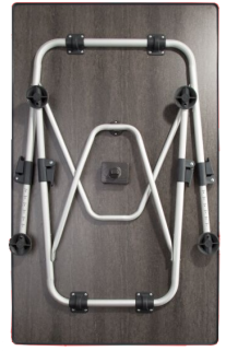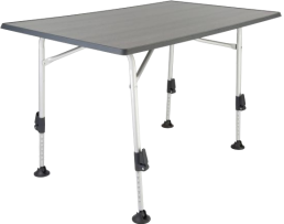 Mit seinem Gestell aus Aluminium besticht der Tisch als Leichtgewicht mit hoher Stabilität. Große, kugelgelagerte Fußteller ermöglichen einen sehr guten Stand auch in ungleichmäßigem Gelände. Alle vier Tischbeine sind höhenverstellbar. Die Tischplatte ist wetterfest und hitzebeständig.